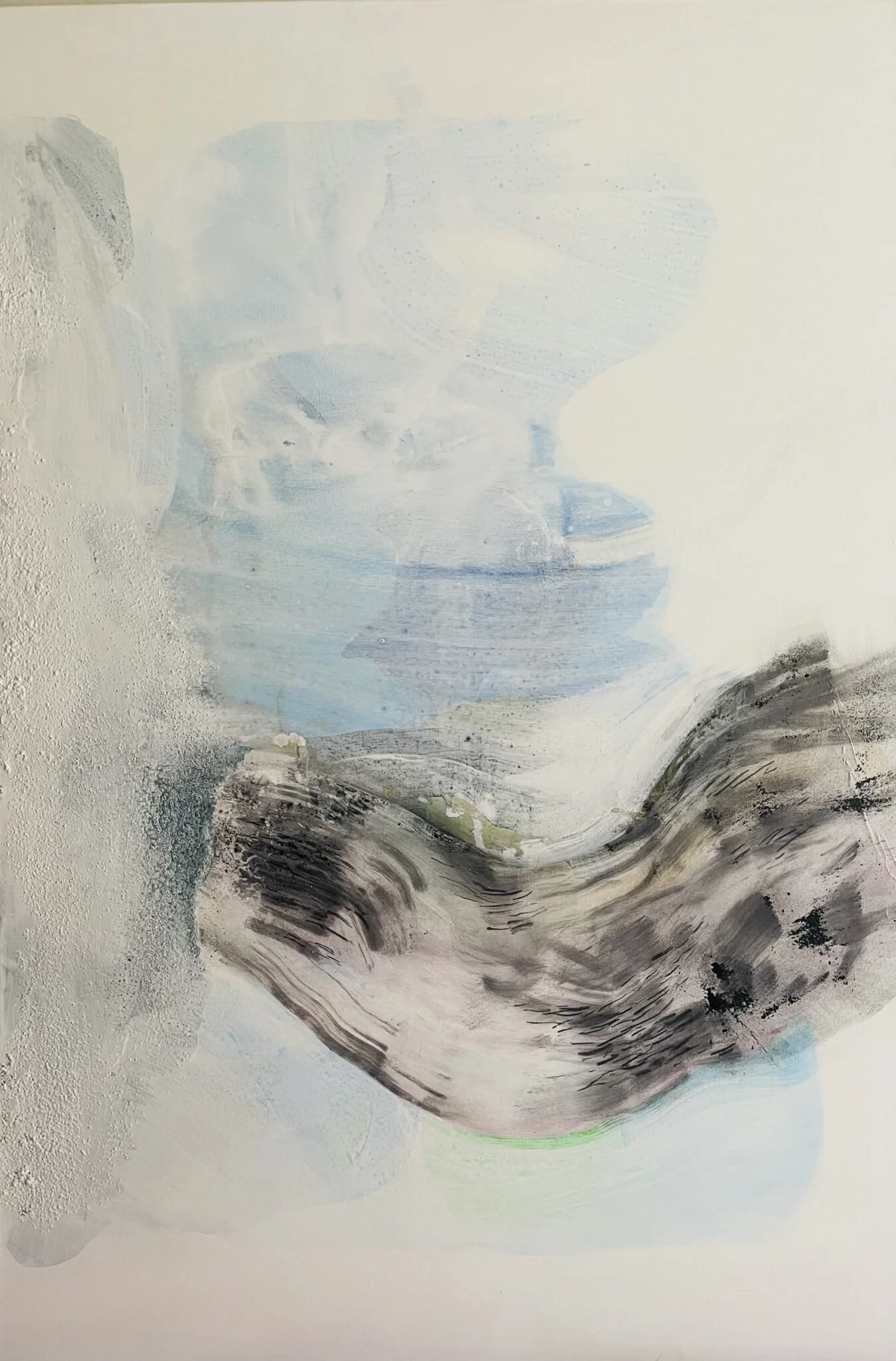 As the snow fell and covered each element, eventually leaving only the river visible, so fell the paint. White and thick. Leaving only shadows of what lay beneath. Quiet articulations informing tone, texture, and evidence of the landscape.